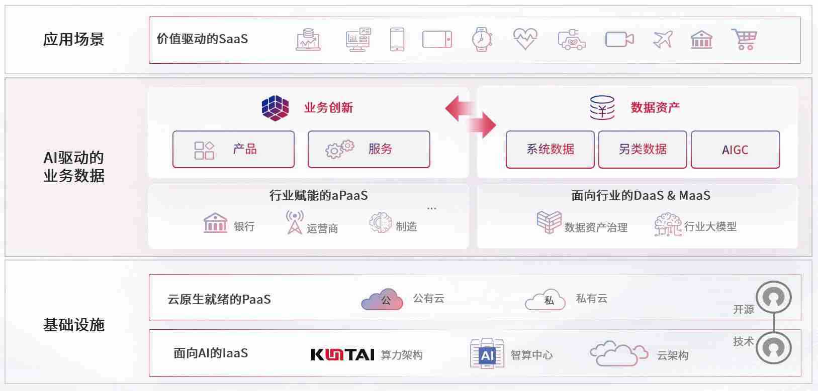 数字时代,,,,围绕企业数字化转型的关键要素,,,,z6com尊龙数码开创性的提出数云融合战略和技术体系框架,,,,着力在云原生、、、数字原生、、AI原生和信创产业上架构产品和服务能力,,,为处在不同数字化转型阶段的快消零售、、、汽车、、、、金融、、、、医疗、、、政企、、、教育、、运营商等行业客户提供泛在的敏捷IT能力和融合的数据驱动能力,,,构建跨界融合创新的数字业务场景和新业务模式,,,助力企业级客户建立面向未来的核心能力和竞争优势,,,,全面推动社会的数字化、、、、智能化转型升级。。
